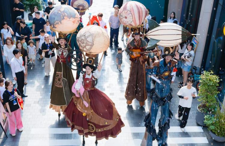3米彩绘高跷巨人踩着鼓点漫步街区,上演移动的视觉奇观,夸张的造型与灵动的步伐成为全场焦点,随手一拍就是刷爆朋友圈的奇幻大片。